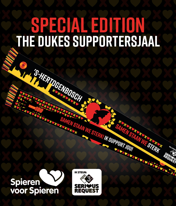 Omarm 3FM Serious Request 2025 en steun daarmee Spieren voor Spieren. Jouw support zorgt er voor dat we deze kinderen ‘Samen laten winnen!’ De opbrengst van elke sjaal gaat rechtstreeks naar het goede doel. Ga jij met ons laten zien dat ‘s-Hertogenbosch de stad is waar supporters bereid zijn om eenieder te omarmen? Koop nu je supportersjaal en bezoek in december het Glazen Huis.